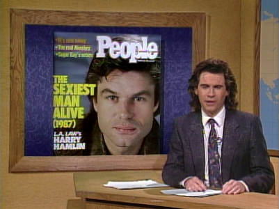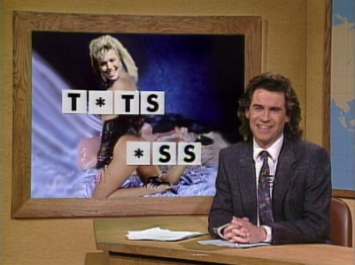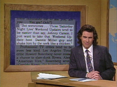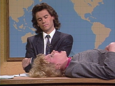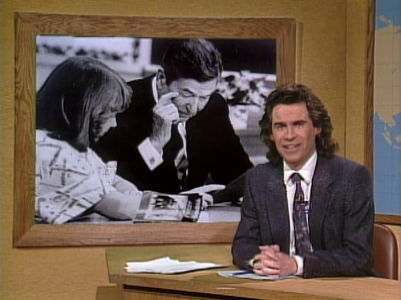 ⁕In a shot of the students, Phil Hartman is seen leaving the set to go to next scene. In reruns, this shot is replaced with one from dress rehearsal.