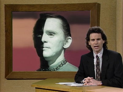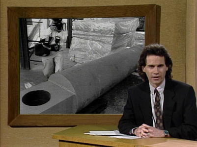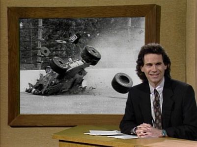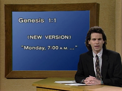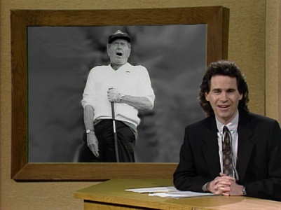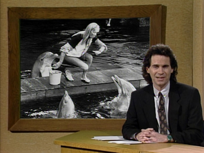 ⁕Shortly before the end of this sketch, the title graphic is briefly seen rewinding on-screen. This is removed in reruns.