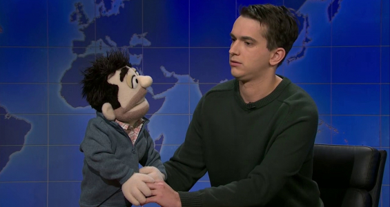 Performs a comedy routine with his puppet dad |